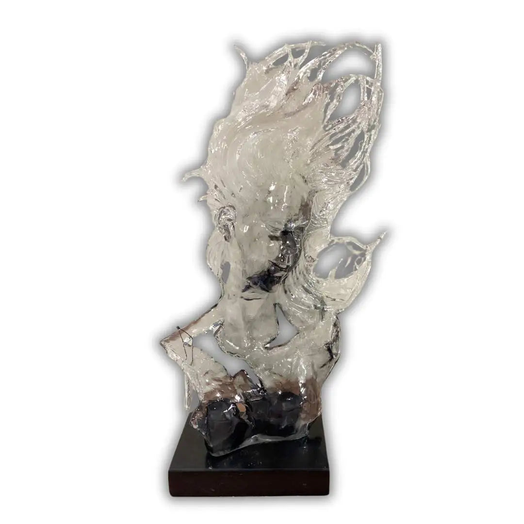 The Crystal Flame Sculpture captures the fluidity and brilliance of fire in a stunning transparent crystal form. With its intricate design and polished black base, it radiates artistic sophistication, making it a captivating centerpiece.