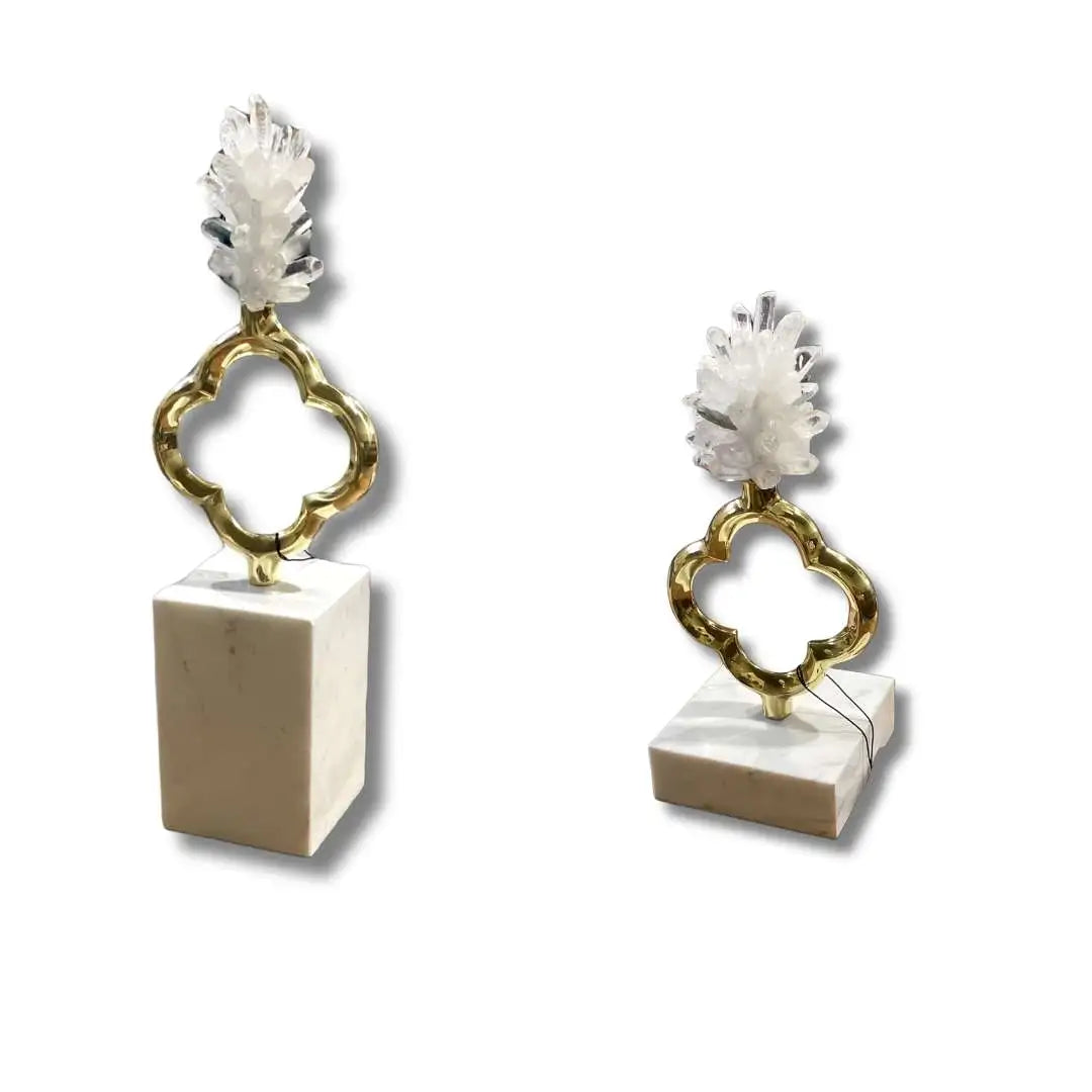 The Crystal Ornament with Golden Clover Accent is a stunning addition to your home decor. Available in medium and large sizes, this decorative piece blends luxurious materials and a unique design to elevate any space.