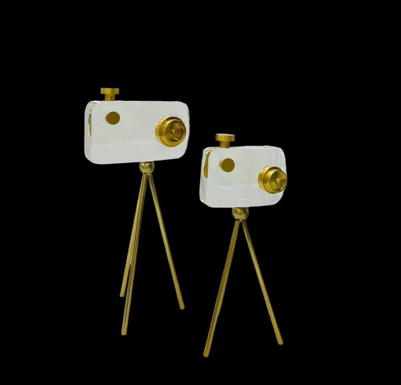 Elevate your decor with the Golden Tripod Camera Decor, a stunning decorative piece that combines modern craftsmanship with a nod to vintage aesthetics. Its sleek tripod stand and golden accents make it a conversation starter and a timeless addition to any space.