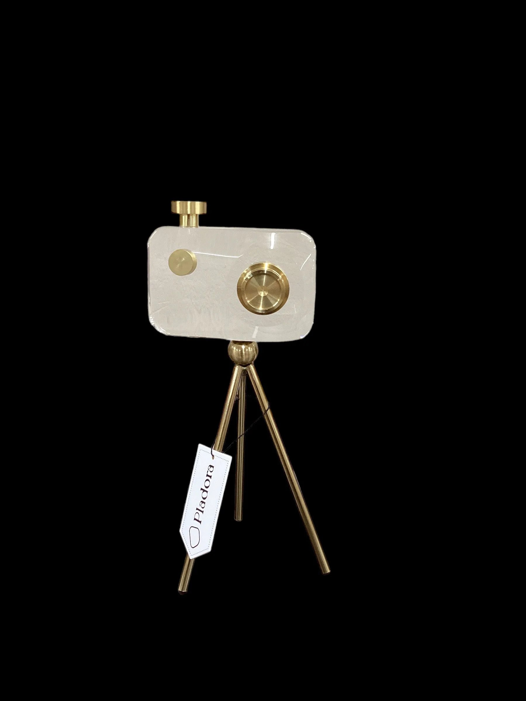 Add a touch of sophistication and creativity to your space with the Golden Tripod Camera Decor—a blend of vintage charm and modern elegance.