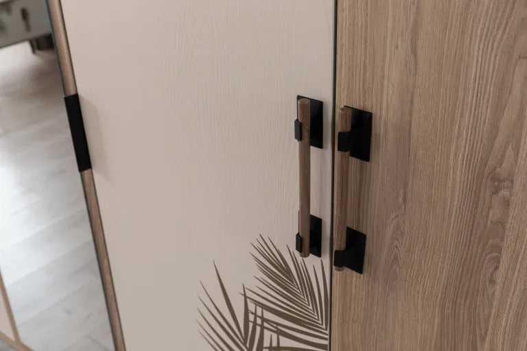 The Malibu Wardrobe combines chic design with functionality, creating the perfect storage solution for your bedroom. Featuring a soft oak finish complemented by subtle palm leaf patterns and a full-length mirrored panel, this wardrobe effortlessly blends contemporary aesthetics with practicality. Its versatile layout includes multiple compartments, shelves, and a spacious hanging section to keep your belongings organized and accessible.