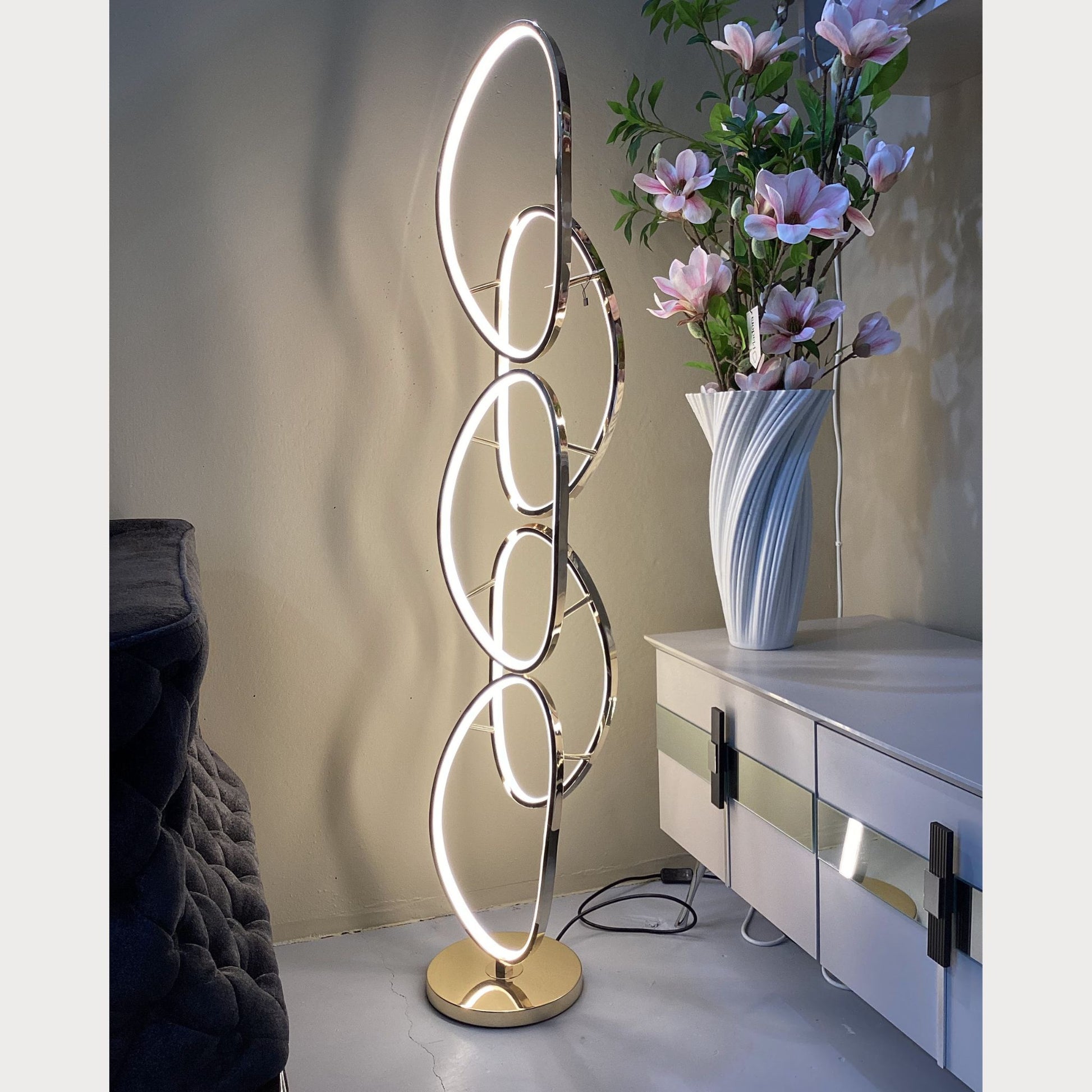 Add an innovative glow to your living space with the Modern Loop LED Floor Lamp, a stunning fusion of art and lighting. Its unique loop design and warm LED lighting create a cozy and inviting atmosphere while adding an elegant statement to any room.