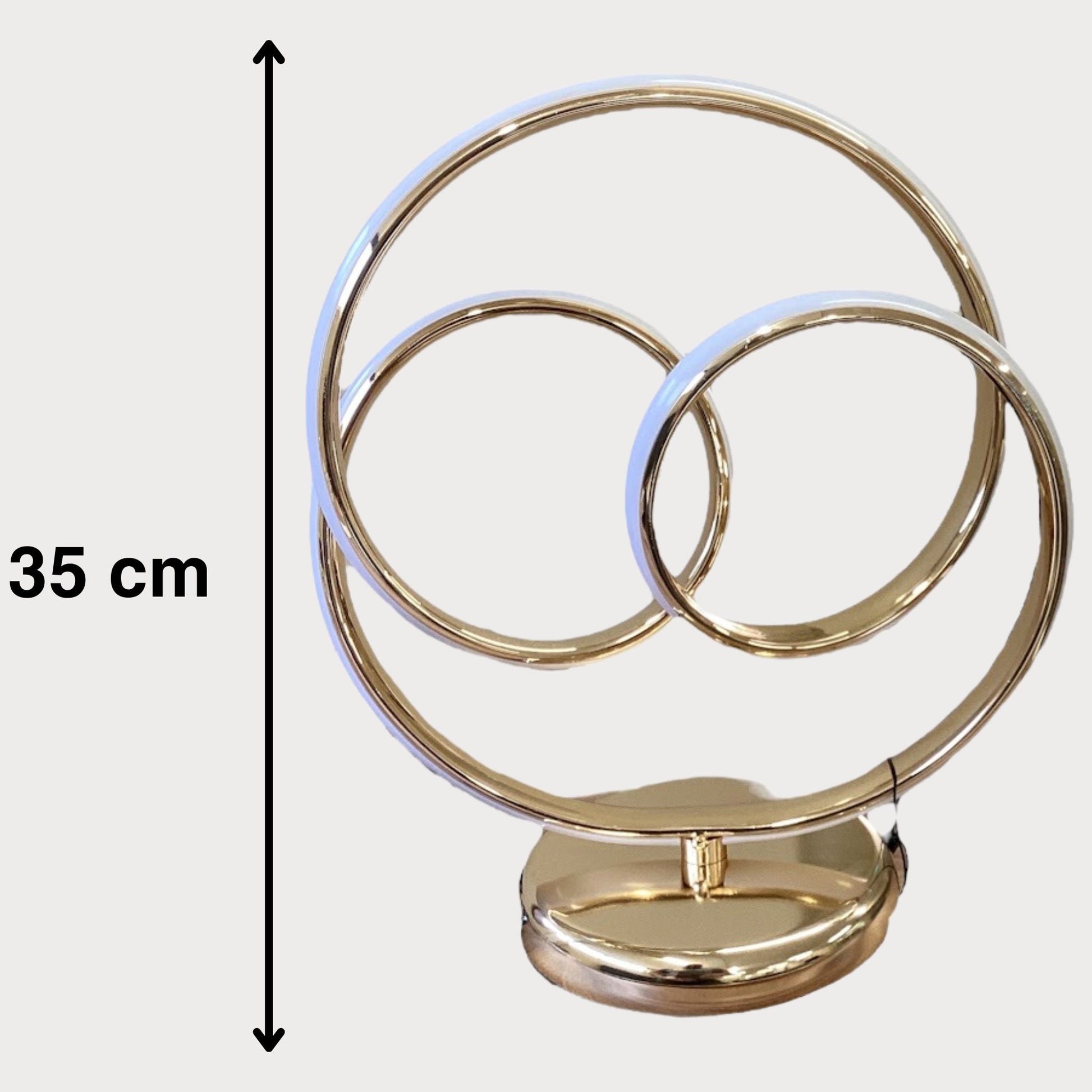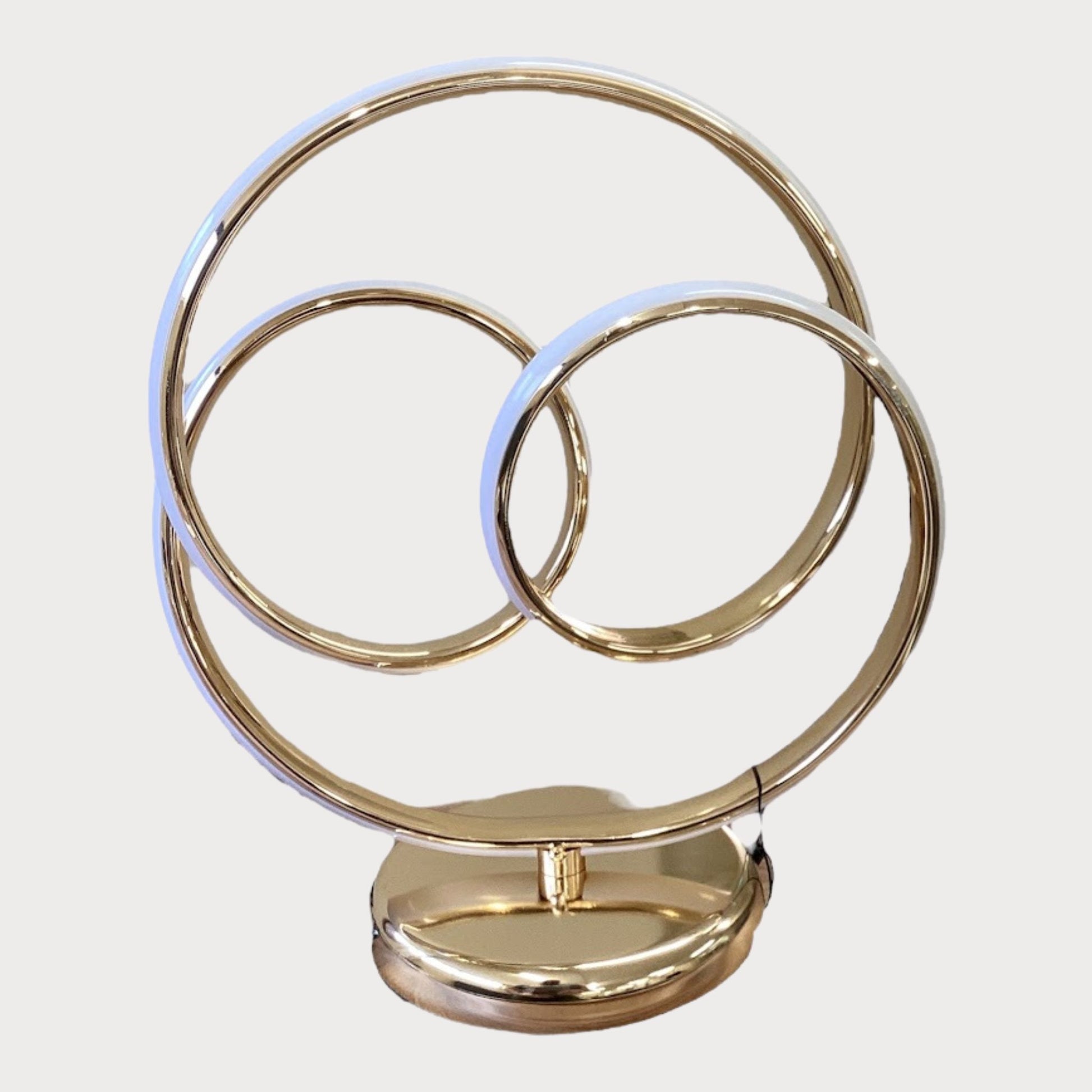 Introduce a modern touch to your space with the Radiant Rings LED Table Lamp, a stylish piece that combines circular minimalism with functional LED lighting. Its captivating design and golden finish make it a striking addition to any contemporary or luxe decor.