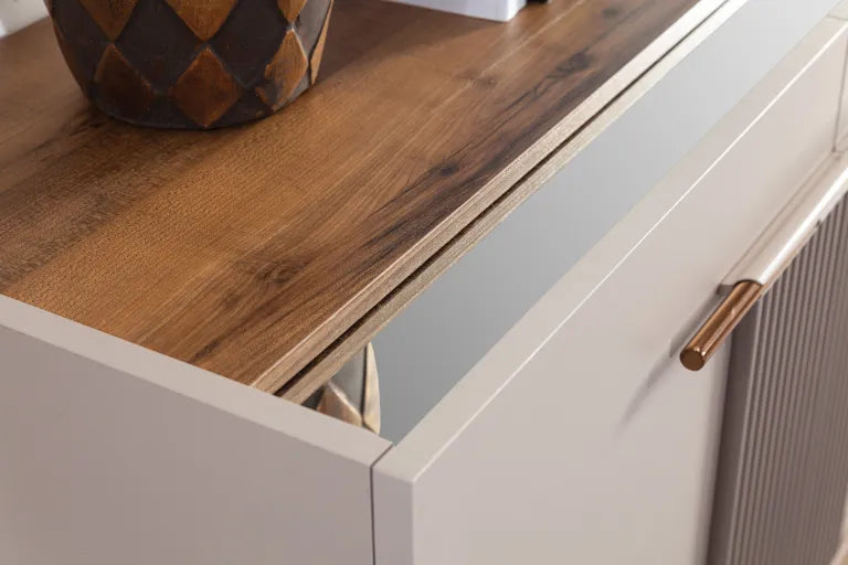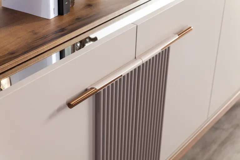 - Elegant Accents: The metallic handles and wood-textured finish add a touch of luxury, making it a centrepiece in any room.